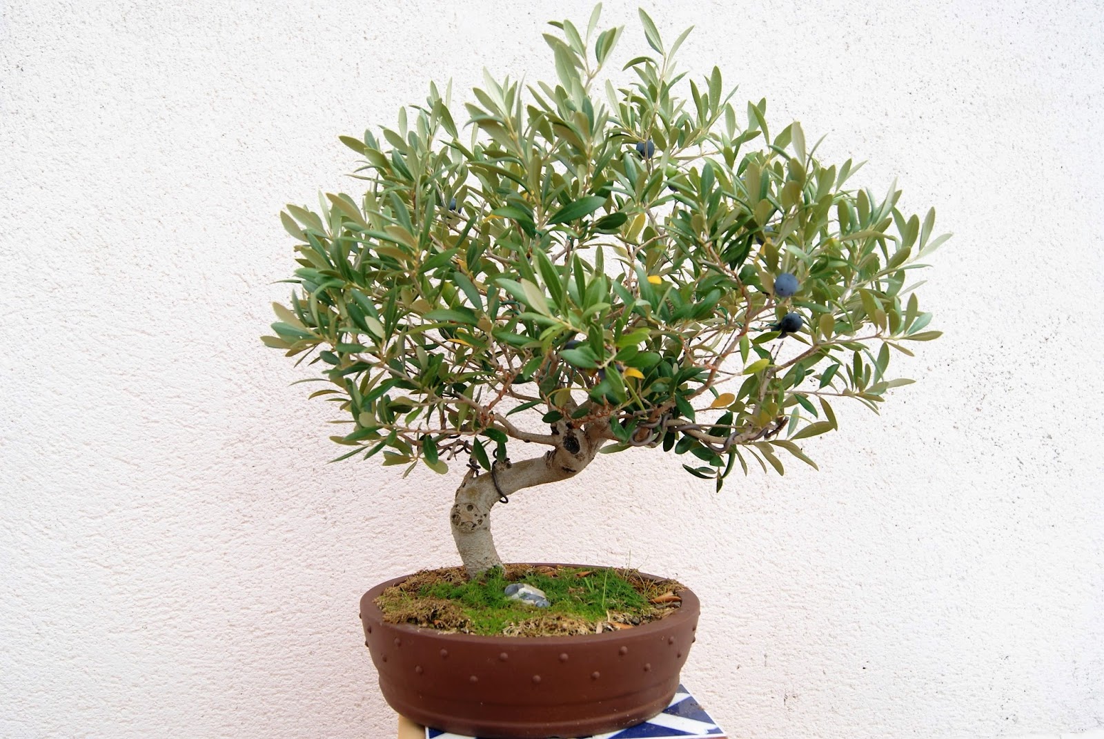 olivo le he dejado algunas aceitunas para que le luzcan en otoño. Lo tengo muy parado. El diseño de la copa en bolita o chupa-chups no es el mejor, pero por el momento no le veo otra alternativa más convincente. Hasta que se me ilumine una idea, seguirá sin cambios.